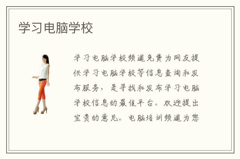 学习电脑学校频道免费为网友提供学习电脑学校等信息查询和发布服务,是寻找和发布学习电脑学校信息的最佳平台。欢迎提出宝贵的意见。电脑培训频道为您提供大量的电脑培训