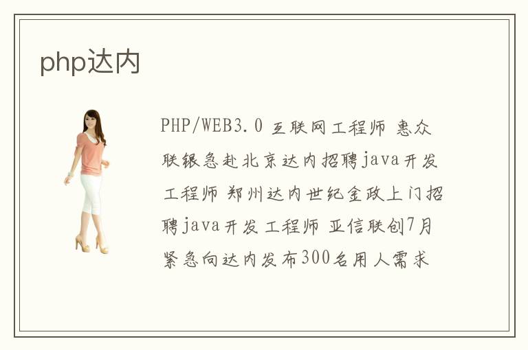 PHP/WEB3.0 互联网工程师 惠众联银急赴北京达内招聘java开发工程师 郑州达内世纪金政上门招聘java开发工程师 亚信联创7月紧急向达内发布300名用人需求 科技合作伙伴永新