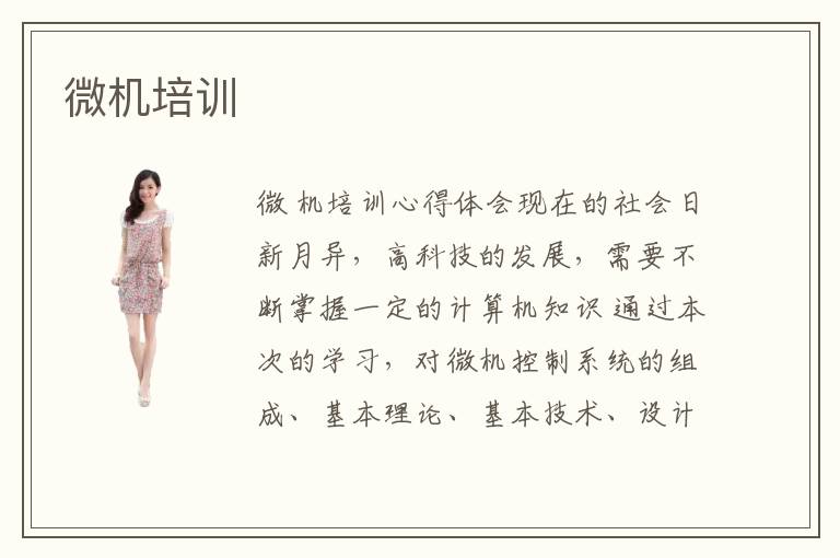 微 机培训心得体会现在的社会日新月异,高科技的发展,需要不断掌握一定的计算机知识 通过本次的学习,对微机控制系统的组成、基本理论、基本技术、设计方法有一个比较全
