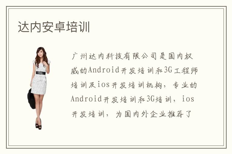 广州达内科技有限公司是国内权威的Android开发培训和3G工程师培训及ios开发培训机构,专业的Android开发培训和3G培训,ios开发培训,为国内外企业推荐了大量优秀的IT人才