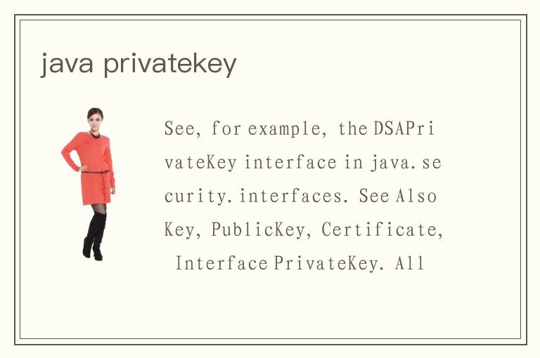 See, for example, the DSAPrivateKey interface in java.security.interfaces. See Also Key, PublicKey, Certificate, Interface PrivateKey. All Superinterfaces
