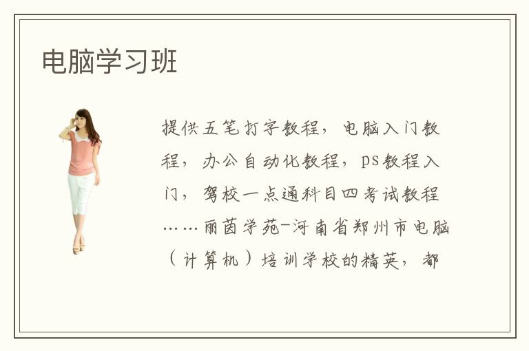 丽茵学苑-河南省郑州市电脑(计算机)培训学校的精英,都市丽茵电脑培训,郑州市专业电脑技术培训学校;郑州电脑培训班,装潢设计培训、实用软件培训学苑,短期培训、职