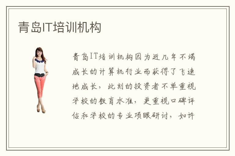 青岛IT培训机构因为近几年不竭成长的计算机行业而获得了飞速地成长,此刻的投资者不单重视学校的教育水准,更重视口碑评估和学校的专业项眼研讨,如许一来,国内的计算机IT培训机构就在讲授品质上获得了一个极新的冲破,开始寻求讲授功效。哪里有性价比高的青岛IT培训学校?青岛IT培训机构哪家强?议决对比青岛地域的各项培训机构,我们不竭寻觅优异的IT培训机构。青岛IT培训机构推荐电脑学校
