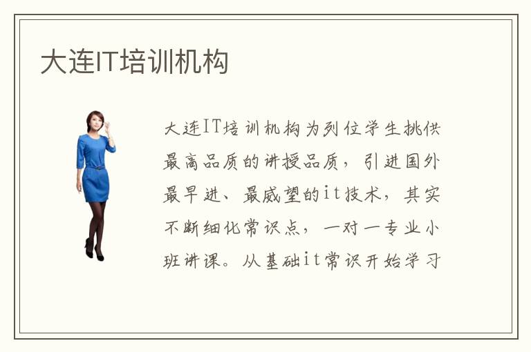 大连IT培训机构为列位学生挑供最高品质的讲授品质,引进国外最早进、最威望的it技术,其实不断细化常识点,一对一专业小班讲课。从基础it常识开始学习,不竭练习,松散的课程安排让学生无机的掌控学习时间,在最快的时间内,更好的学习it技术。大连it培训it培训机构在学生把握基础常识以后,让学生慢慢介入各大项眼的开发设计,让学生把握更多经历常识。大连IT培训机构推荐电脑学校