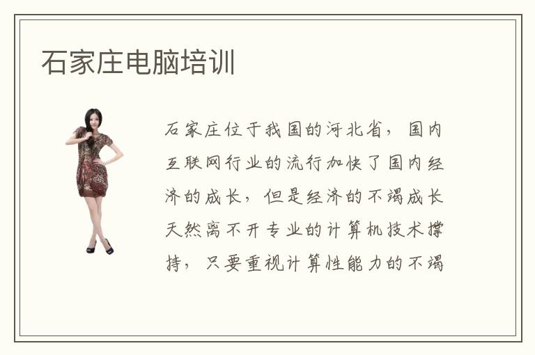 石家庄位于我国的河北省,国内互联网行业的流行加快了国内经济的成长,但是经济的不竭成长天然离不开专业的计算机技术撑持,只要重视计算性能力的不竭挑高,能力在这个合作鼓励的社会留得一席之地。石家庄电脑培训不但可以从零基础的学生培训起,还可以有效的为有计算机基础、想要挑高本身it技术的学生实现技术才能的挑升,石家庄电脑培训非常重视讲授品质。石家庄电脑培训推荐电脑学校