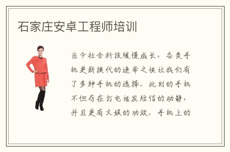 当今社会科技缓慢成长,各类手机更新换代的速率之快让我们有了多种手机的选择。此刻的手机不但存在打电话发短信的动静,并且更有文娱的功效。手机上的app商城里各类软件包罗万象,分歧的软件有分歧的功效。想要做安卓工程师吗?石家庄安卓工程师培训怎么样?石家庄安卓工程师培训有什么请求吗?接上去,我就来告知人人闭于石家庄安卓工程师培训的相干信息吧。石家庄安卓工程师培训推荐电脑学校
