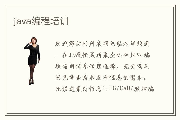 欢迎您访问列表网电脑培训频道,在此提供最新最全各地java编程培训信息供您选择,充分满足您免费查看和发布信息的需求。此频道最新信息1.UG/CAD/数控编程培训;2.浦东