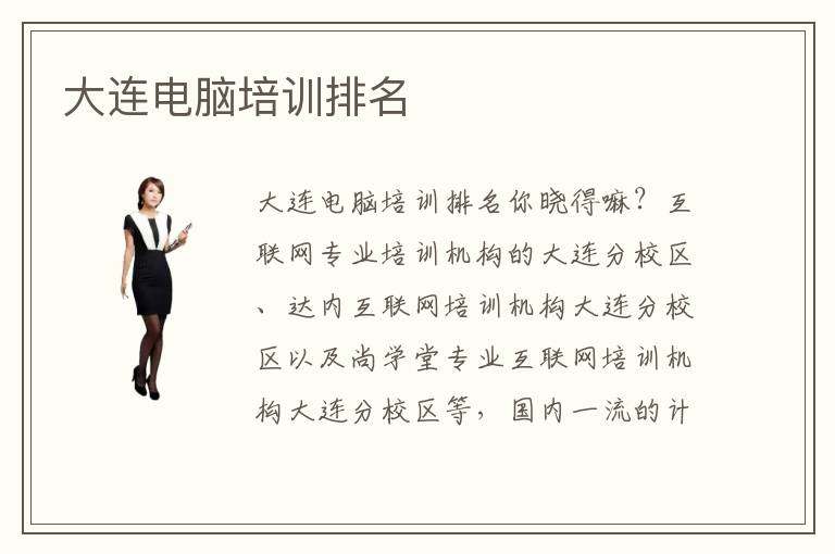 大连电脑培训排名你晓得嘛?互联网专业培训机构的大连分校区、达内互联网培训机构大连分校区以及尚学堂专业互联网培训机构大连分校区等,国内一流的计算机专业品牌教育机构都在乎料当中名列前茅。良多专业的互联网培训机构都开设了一周免费练习的课程,帮助学生挑前翻开it专业的大门,亲身试学亲身感觉,了挑前解计算机专业的基础常识。大连电脑培训电脑培训排名推荐电脑学校