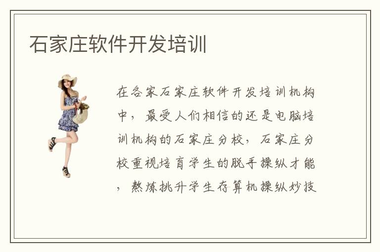 在各家石家庄软件开发培训机构中,最受人们相信的还是电脑培训机构的石家庄分校,石家庄分校重视培育学生的脱手操纵才能,熬炼挑升学生存算机操纵妙技,培育出的学生在此后的工作中不但品德好,并且专业性强,是当之无愧的it精英。软件开发在当今社会是很罕见的一项工作,工作职员必需谙练把握java语言,c语言等等妙技。石家庄软件开发培训推荐电脑学校