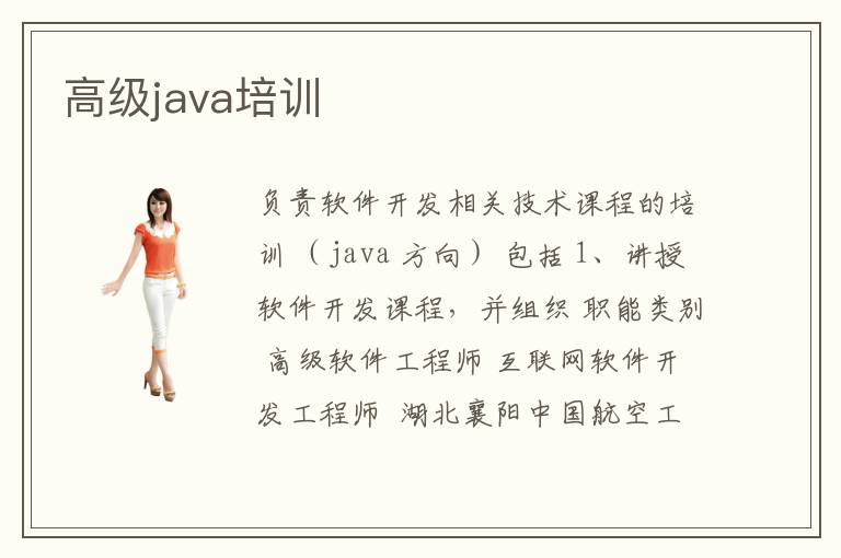 负责软件开发相关技术课程的培训 (java 方向) 包括 1、讲授软件开发课程,并组织 职能类别 高级软件工程师 互联网软件开发工程师 湖北襄阳中国航空工业第