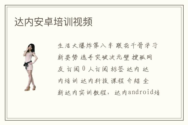 生活大爆炸第八季 跟花千骨学习新姿势 选手突破次元壁 搜狐网友 订阅 0 人订阅 标签 达内 达内培训 达内科技 课程 介绍 全新达内实训教程,达内android培