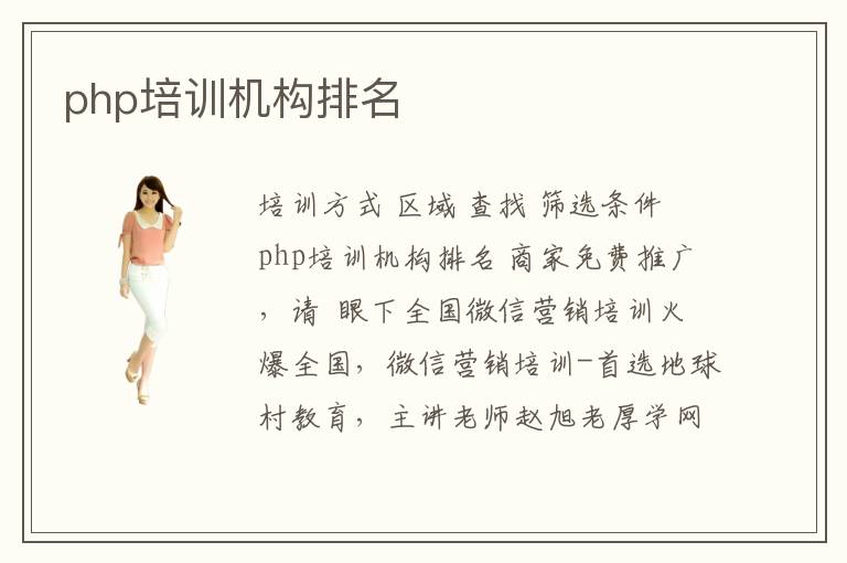 培训方式 区域 查找 筛选条件 php培训机构排名 商家免费推广,请 眼下全国微信营销培训火爆全国,微信营销培训-首选地球村教育,主讲老师赵旭老