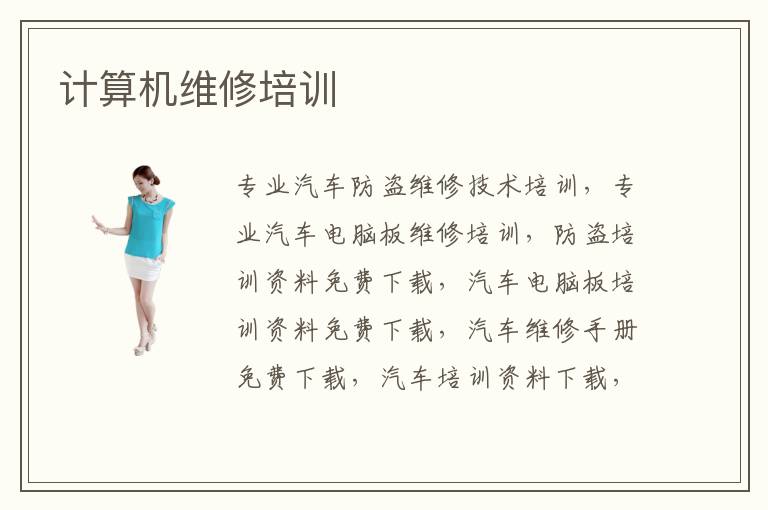 学制 学习内容 电脑安装与维修基础班 半个月 适合了解 windows 基础操作的人员学习,以当前流行的微型计算机为基础,介 李娜老师 01月02日 计算机维修培训,打破传统的师徒