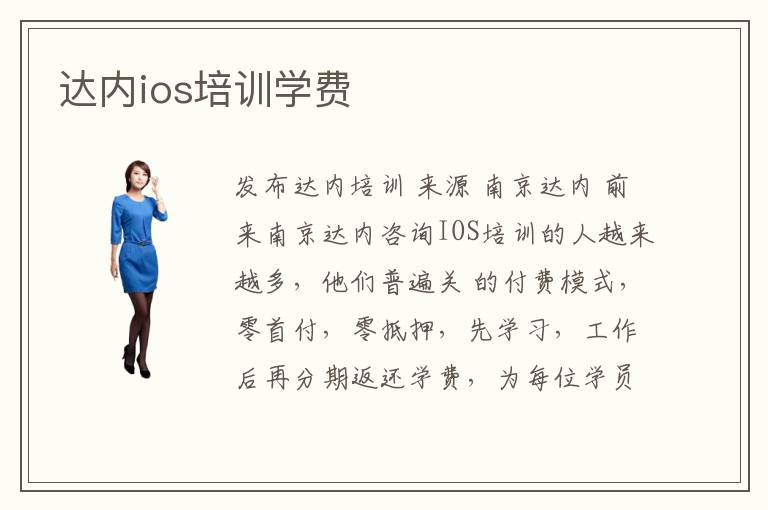 发布达内培训 来源 南京达内 前来南京达内咨询IOS培训的人越来越多,他们普遍关 的付费模式,零首付,零抵押,先学习,工作后再分期返还学费,为每位学员提供了公平