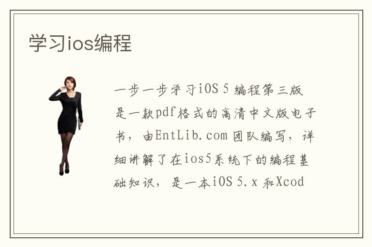 一步一步学习iOS 5 编程第三版是一款pdf格式的高清中文版电子书,由EntLib.com 团队编写,详细讲解了在ios5系统下的编程基础知识,是一本iOS 5.x 和Xcode 4.4 的中文版书籍