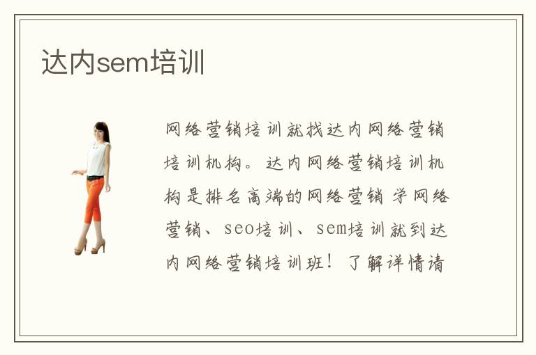 网络营销培训就找达内网络营销培训机构。达内网络营销培训机构是排名高端的网络营销 学网络营销、seo培训、sem培训就到达内网络营销培训班!了解详情请登陆达内网络营