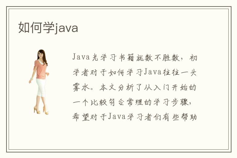 Java光学习书籍就数不胜数,初学者对于如何学习Java往往一头雾水。本文分析了从入门开始的一个比较符合常理的学习步骤,希望对于Java学习者们有些帮助。