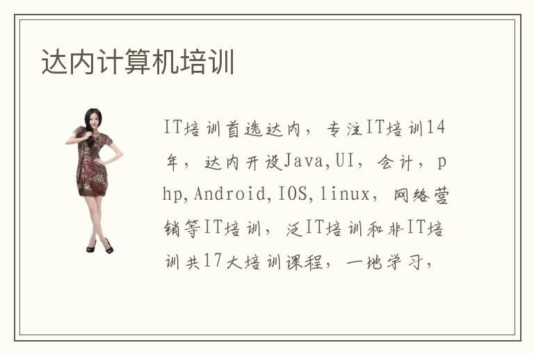 IT培训首选达内,专注IT培训14年,达内开设Java,UI,会计,php,Android,IOS,linux,网络营销等IT培训,泛IT培训和非IT培训共17大培训课程,一地学习,全国就业!