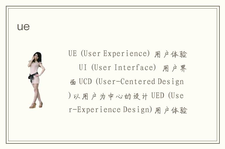 UE (User Experience) 用户体验 UI (User Interface) 用户界面 UCD (User-Centered Design)以用户为中心的设计 UED (User-Experience Design)用户体验设计 CDC(