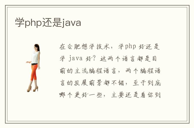 在合肥想学技术,学php 好还是学 java 好?这两个语言都是目前的主流编程语言,两个编程语言的发展前景都不错,至于到底哪个更好一些,主要还是看你到底想从事那个方向的开
