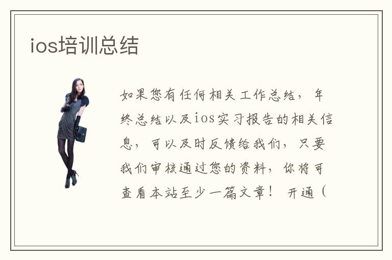如果您有任何相关工作总结,年终总结以及ios实习报告的相关信息,可以及时反馈给我们,只要我们审核通过您的资料,你将可查看本站至少一篇文章! 开通(0)