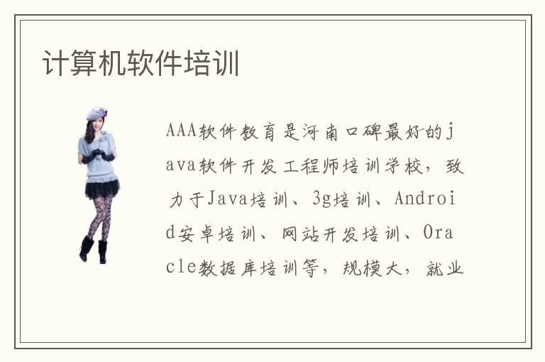 AAA软件教育是河南口碑最好的java软件开发工程师培训学校,致力于Java培训、3g培训、Android安卓培训、网站开发培训、Oracle数据库培训等,规模大,就业强,口碑好,可