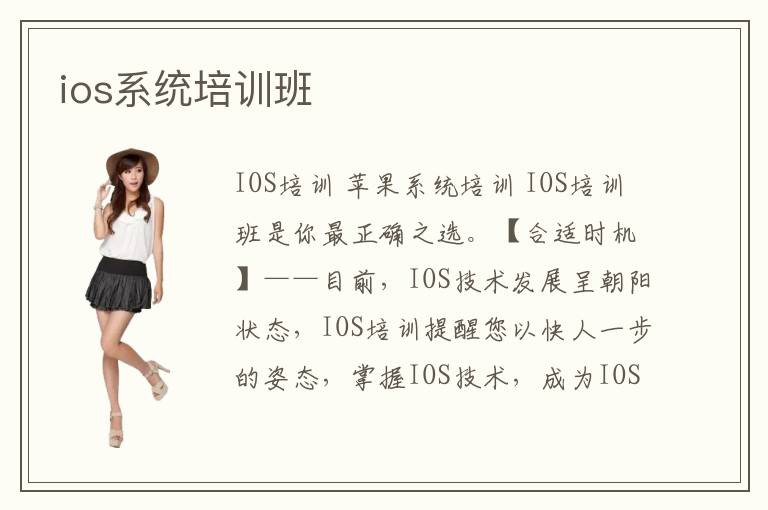 IOS培训 苹果系统培训 IOS培训班是你最正确之选。【合适时机】——目前,IOS技术发展呈朝阳状态,IOS培训提醒您以快人一步的姿态,掌握IOS技术,成为IOS领域的强劲精