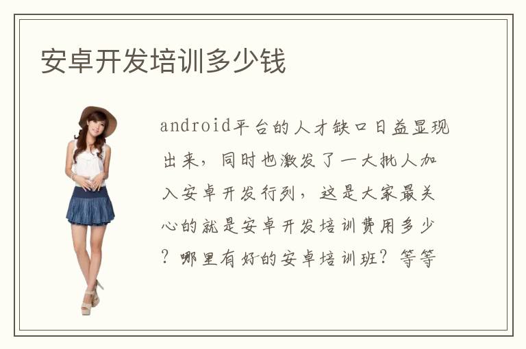 android平台的人才缺口日益显现出来,同时也激发了一大批人加入安卓开发行列,这是大家最关心的就是安卓开发培训费用多少?哪里有好的安卓培训班?等等问题,现在就让我