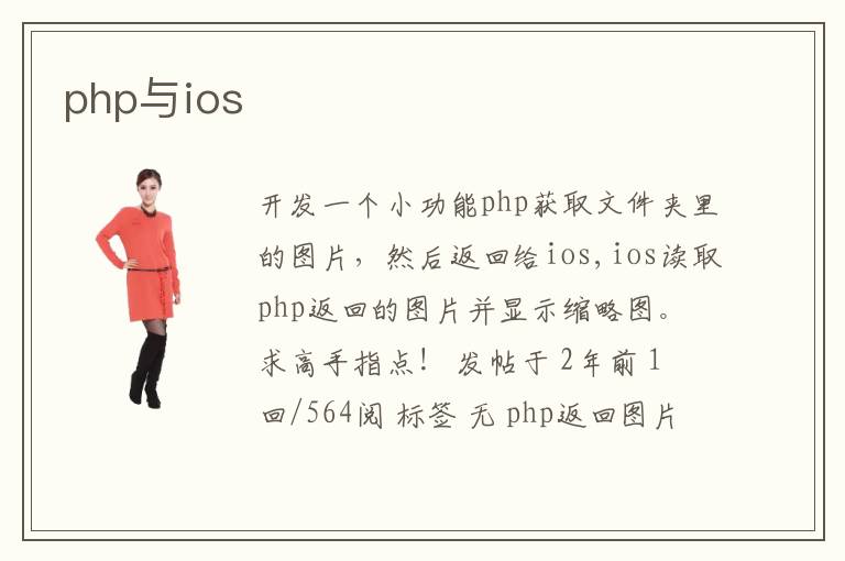 开发一个小功能php获取文件夹里的图片,然后返回给ios,ios读取php返回的图片并显示缩略图。 求高手指点! 发帖于 2年前 1 回/564阅 标签 <无> php返回图片的url,iOS端可以