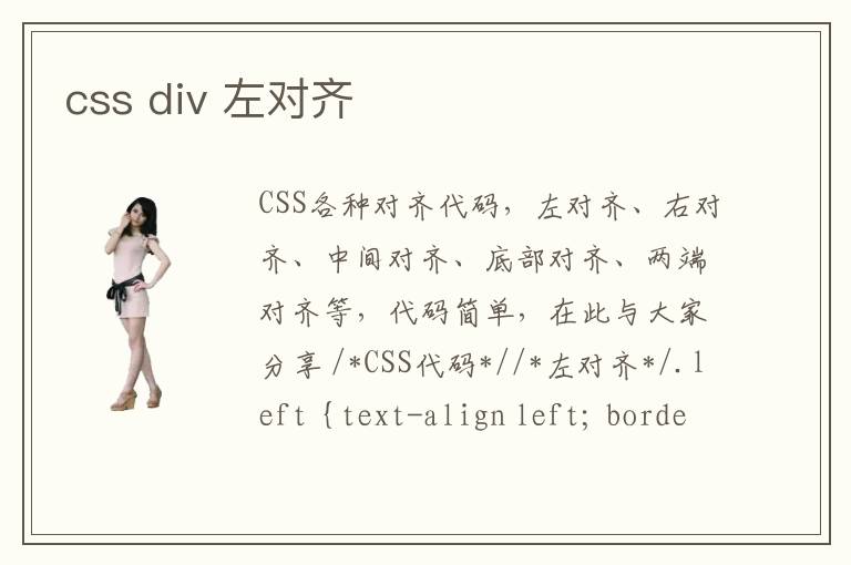 CSS各种对齐代码,左对齐、右对齐、中间对齐、底部对齐、两端对齐等,代码简单,在此与大家分享 /*CSS代码*//*左对齐*/.left { text-align left; border 1px dotted black; width