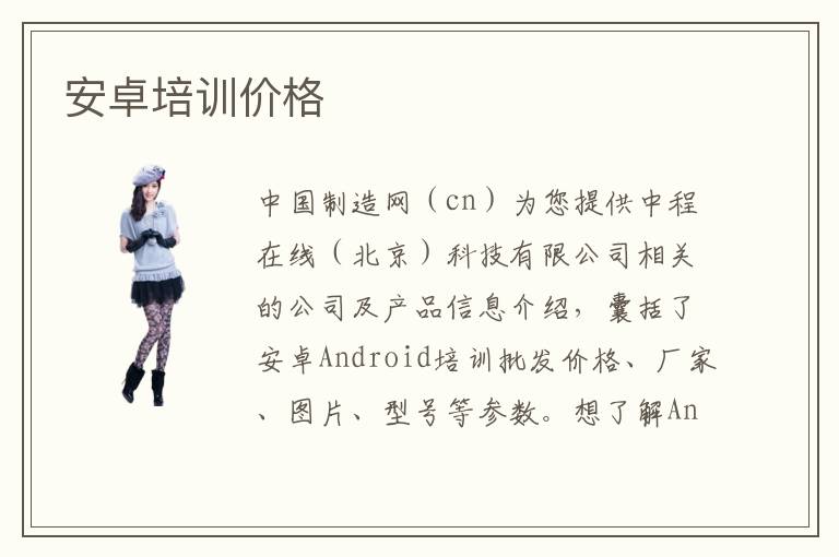 中国制造网(cn)为您提供中程在线(北京)科技有限公司相关的公司及产品信息介绍,囊括了安卓Android培训批发价格、厂家、图片、型号等参数。想了解