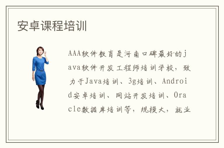 AAA软件教育是河南口碑最好的java软件开发工程师培训学校,致力于Java培训、3g培训、Android安卓培训、网站开发培训、Oracle数据库培训等,规模大,就业强,口碑好,可