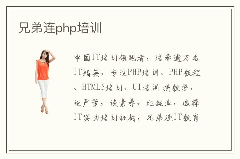 中国IT培训领跑者,培养逾万名IT精英,专注PHP培训、PHP教程、HTML5培训、UI培训 拼教学,论严管,谈素养,比就业,选择IT实力培训机构,兄弟连IT教育,就够了!