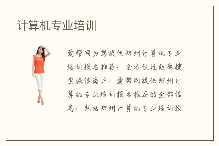 爱帮网为您提供郑州计算机专业培训报名推荐,全方位近距离搜索诚信商户。爱帮网提供郑州计算机专业培训报名推荐的全部信息,包括郑州计算机专业培训报名推荐商户预订