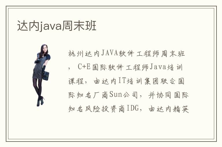 杭州达内JAVA软件工程师周末班, C+E国际软件工程师Java培训课程,由达内IT培训集团联合国际知名厂商Sun公司,并协同国际知名风险投资商IDG,由达内精英教师团队联合