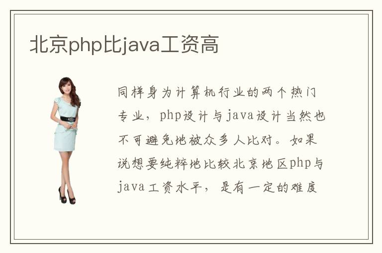 同样身为计算机行业的两个热门专业,php设计与java设计当然也不可避免地被众多人比对。如果说想要纯粹地比较北京地区php与java工资水平,是有一定的难度系数的,这样容易片面化局限化。一般情况下,北京php的工资会比java工资高高一些。但是,这只是平均情况,毕竟真实工作水平取决于个人的能力水平。北京php与java工资如何进行比较?北京php的工资高还是java的工资高?